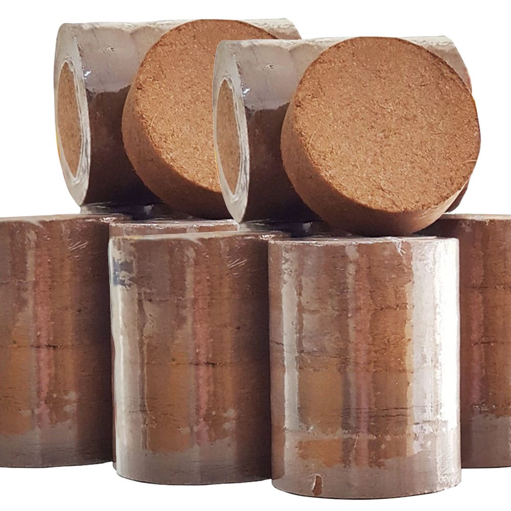 - Được chế biến từ mùn dừa (phần mịn của xơ dừa) sau khi được xử lý chát và nén thành các khối vuông hoặc chữ nhật.